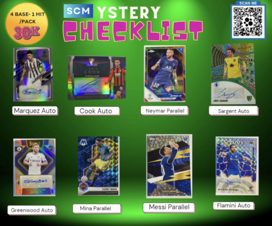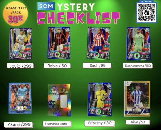 Combo 10 Gói thẻ SCMystery 30K trong đó, mỗi pack gồm có 5 thẻ gồm 4 thẻ thường + 1 thẻ đặc biệt Tỉ lệ thẻ đặc biệt: - 70% Insert - 20% Thẻ giới hạn ( Numbered ) - 10% Chữ ký ( Autograph ) Tổng cộng sẽ có 50 Thẻ, 40 thẻ thường và 10 thẻ đặc biệt