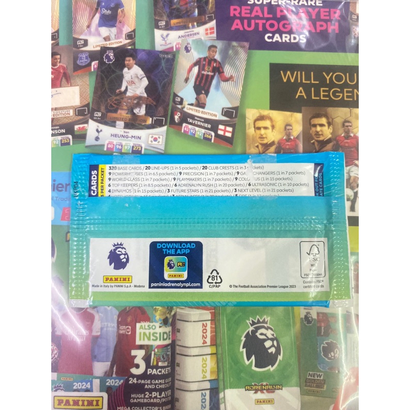 1 Gói thẻ Panini Adrenalyn XL Pack 2023/24 gồm có tổng cộng 6 thẻ - Có thể mở ra thẻ golden baller hoặc thẻ limited edition của các cầu thủ ngôi sao siêu sao nổi tiếng