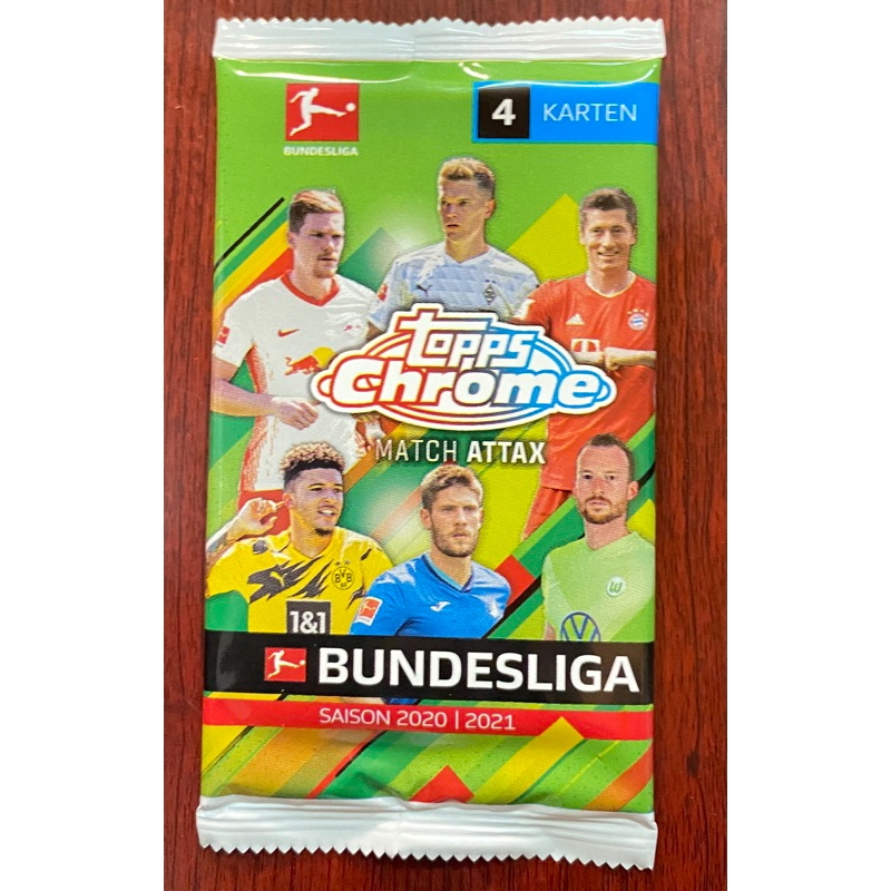 Gói thẻ Topps Match Attax Chrome Bundesliga Pack 2020/21 có 4 thẻ nếu may mắn có thể ra thẻ giới hạn, thẻ chữ ký !