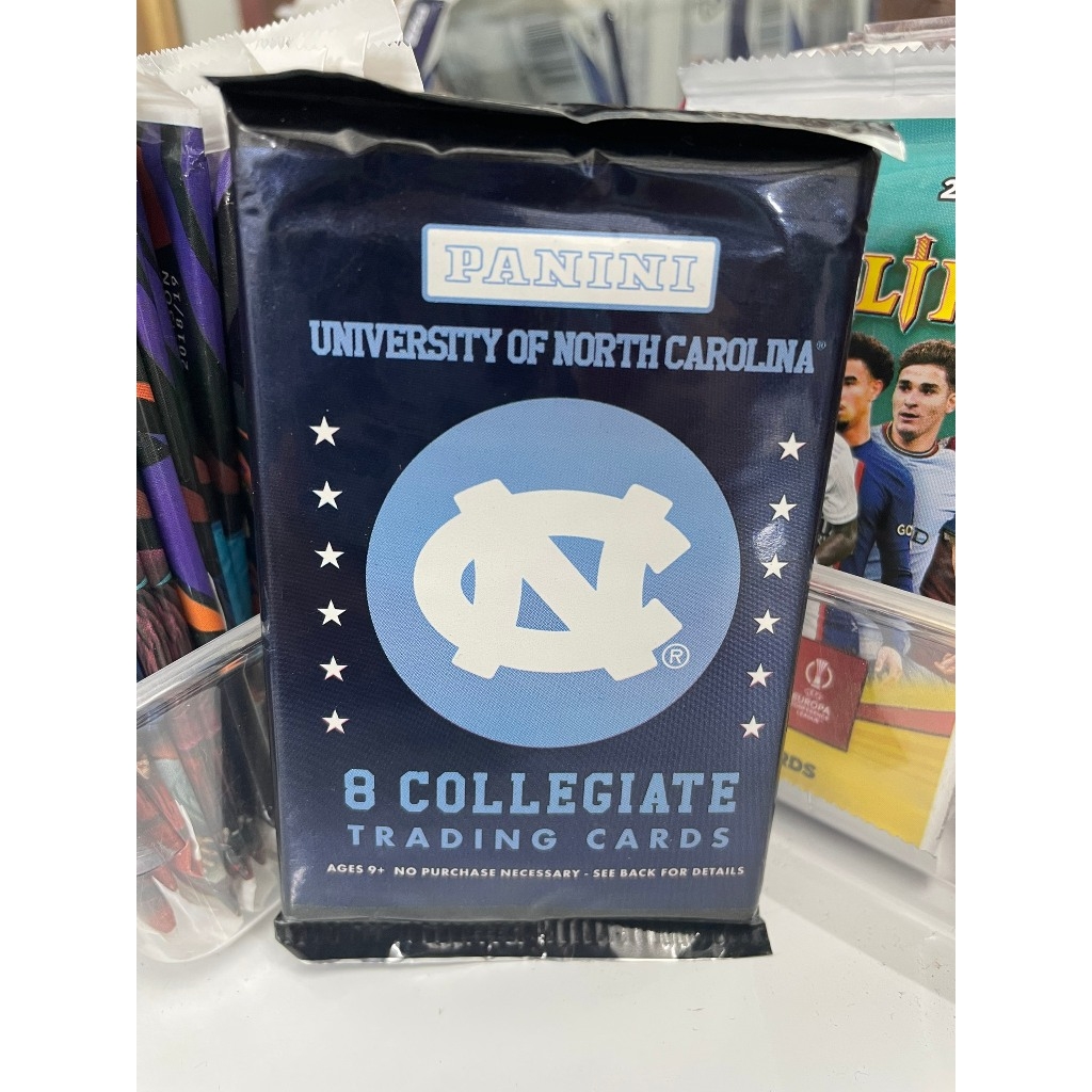Gói thẻ University of North Carolina của Panini sẽ bao gồm 8 Collegiate trading card ngẫu nhiên liên quan đến các Trường đại học ở North Carolina