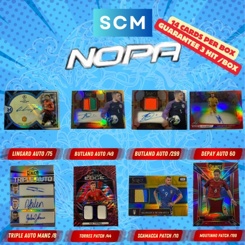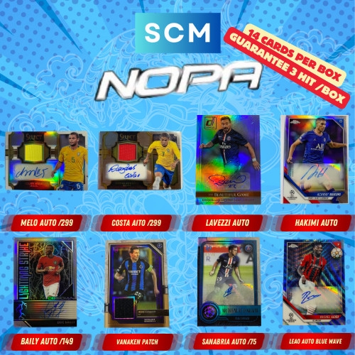 Hộp thẻ bóng đá SCM Nopa 2023/24 là phiên bản đặc biệt được ra mắt vào tết âm lịch ( Lunar New Year ) của SCM Store. Một hộp sản phẩm sẽ được đóng seal và trong đó sẽ có 14 thẻ trong đó:- 8 thẻ thường ( Base )- 2 thẻ đặc biệt ( Insert )- 1 thẻ Panini Nobility - 3 thẻ Hits ( Có thể là Autograph/ Patch/ Number/ Case Hit/ Variation/ Star Rookies/ PSA & SGC Slabs/ Nobility SP & SSP )- Phụ kiện thẻ rỗng mới tinh như Magnetic và Toploader sẽ ra ngẫu nhiên trong các box- Các thẻ Hits sẽ được đi kèm với Toploader, Magnetic và Card Holder***Lưu ý: Vì giới hạn số lượng ảnh nên chúng mình không thể đăng hết số Hits, tuy nhiên chất lượng và giá trị của từng thẻ Hits được đảm bảo bởi SCM và sẽ không có các thẻ được tăng giá trị vô lý