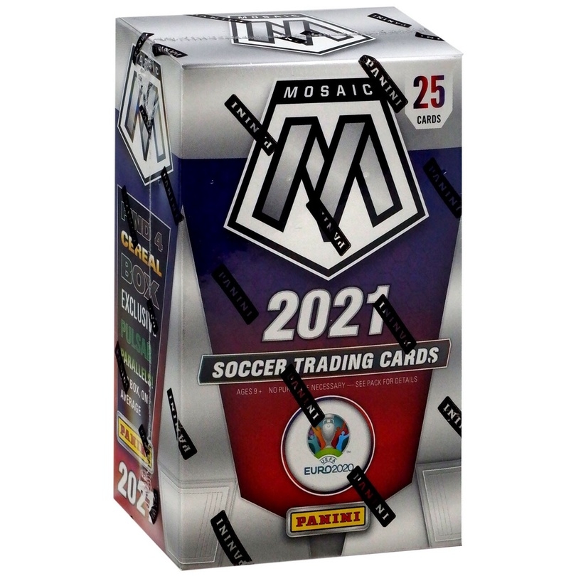 Hộp Panini Mosaic Cereal Box 2020/21 gồm có: Mỗi Hộp chứa Bốn Parallels Pulsar Độc quyền! Mosaic ra mắt giải bóng đá quốc tế với giải đấu UEFA Euro 2020 và giới thiệu một đội hình độc đáo gồm các điểm tương đồng và phụ trang!