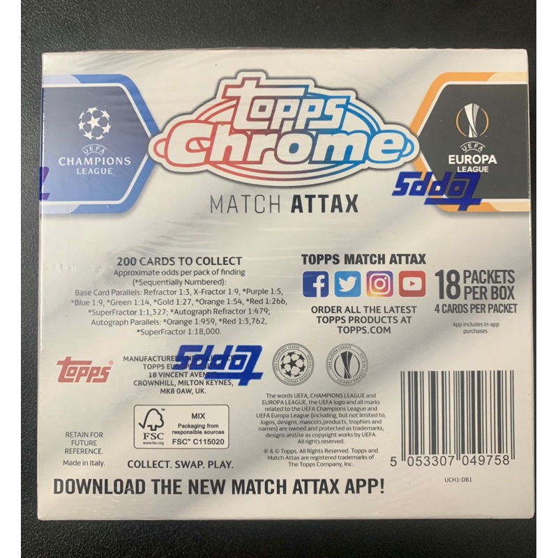 1 Hộp thẻ Topps Match Attax Chrome UCL Box 2020/21 sẽ có tổng cộng 18 pack