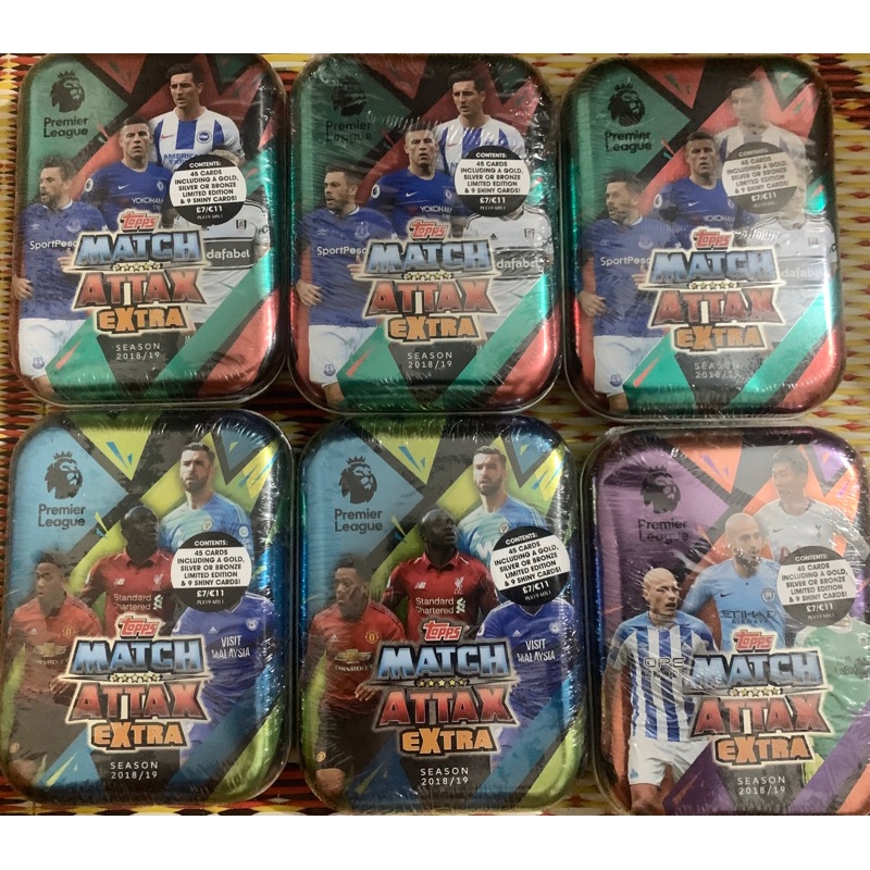 hộp thẻ mini tin match attax mini tin 2018/19 gồm có tổng cộng 45 thẻ này trong đó có 1 thẻ limted vàng hoặc bạc hoặc đồng và 9 thẻ shiny. Hộp hơi móp do vận chuyển từ nước ngoài về nha mọi người